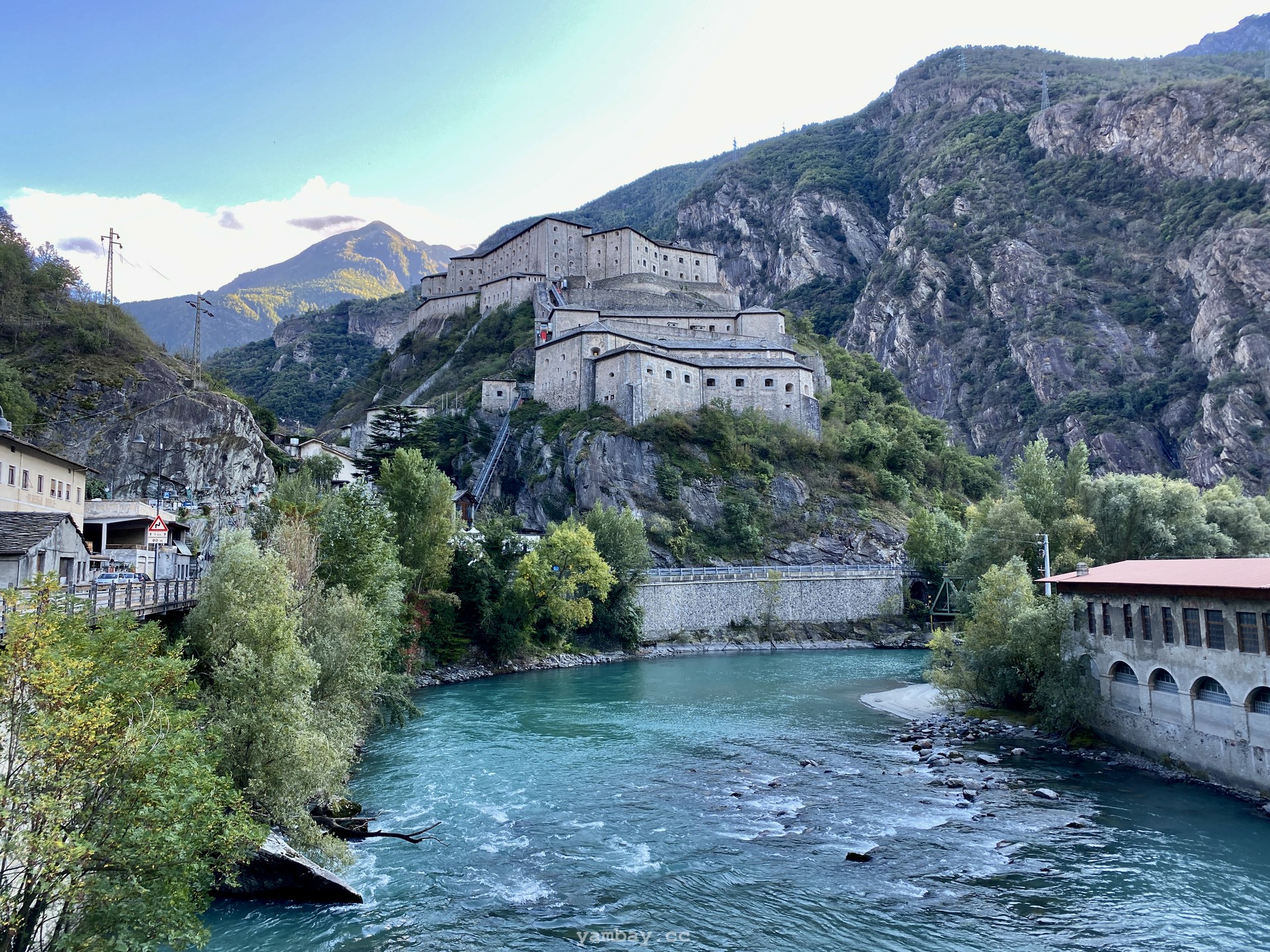 Машину оставили вот на этой крытой стоянке (координаты: 45.61036376906959, 7.7448391026289265) прямо около первого фуникулёра, ведущего к самой крепости. За весь будний день отдали 3 евро.