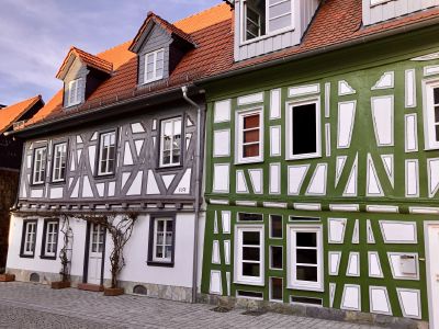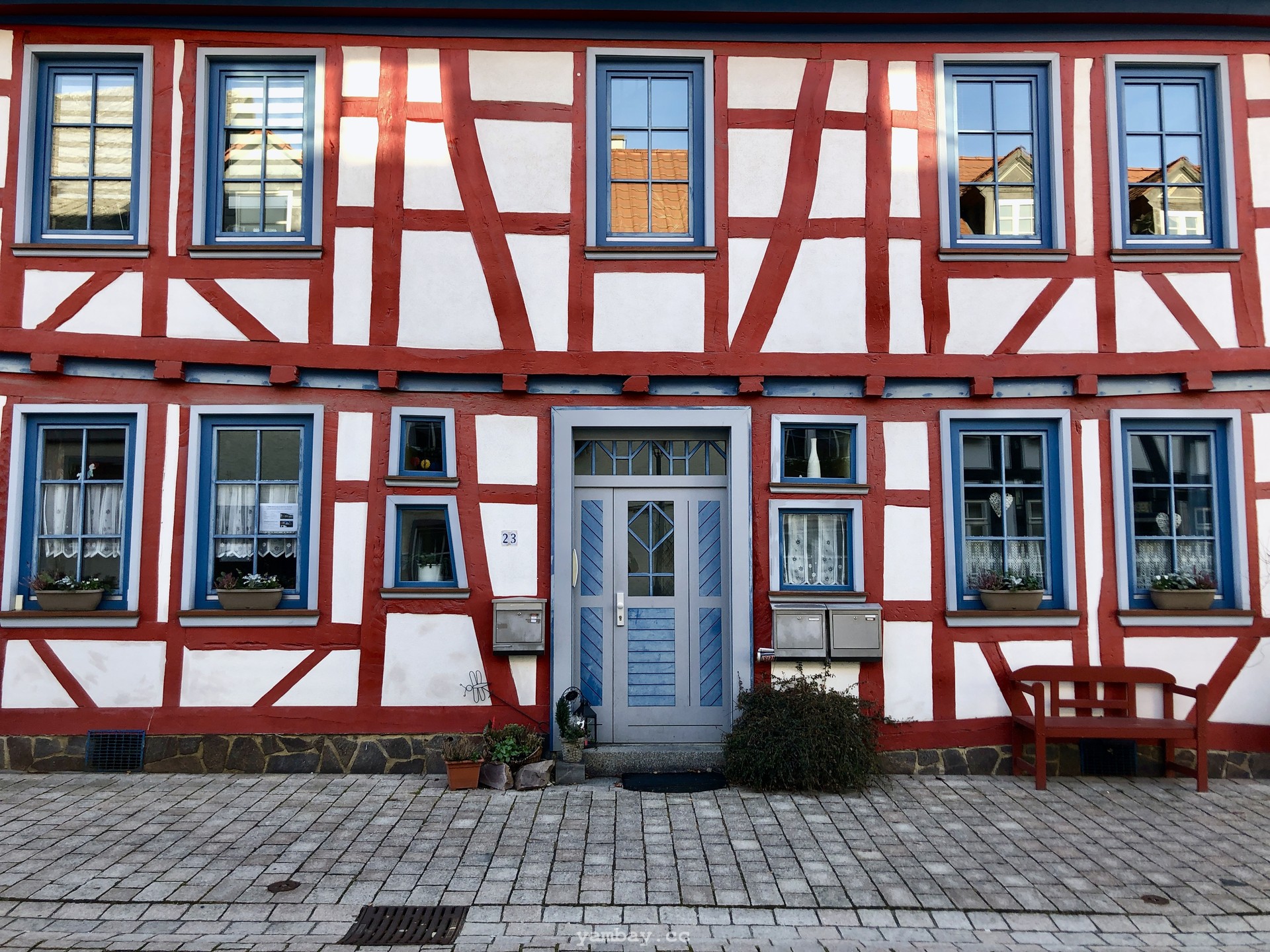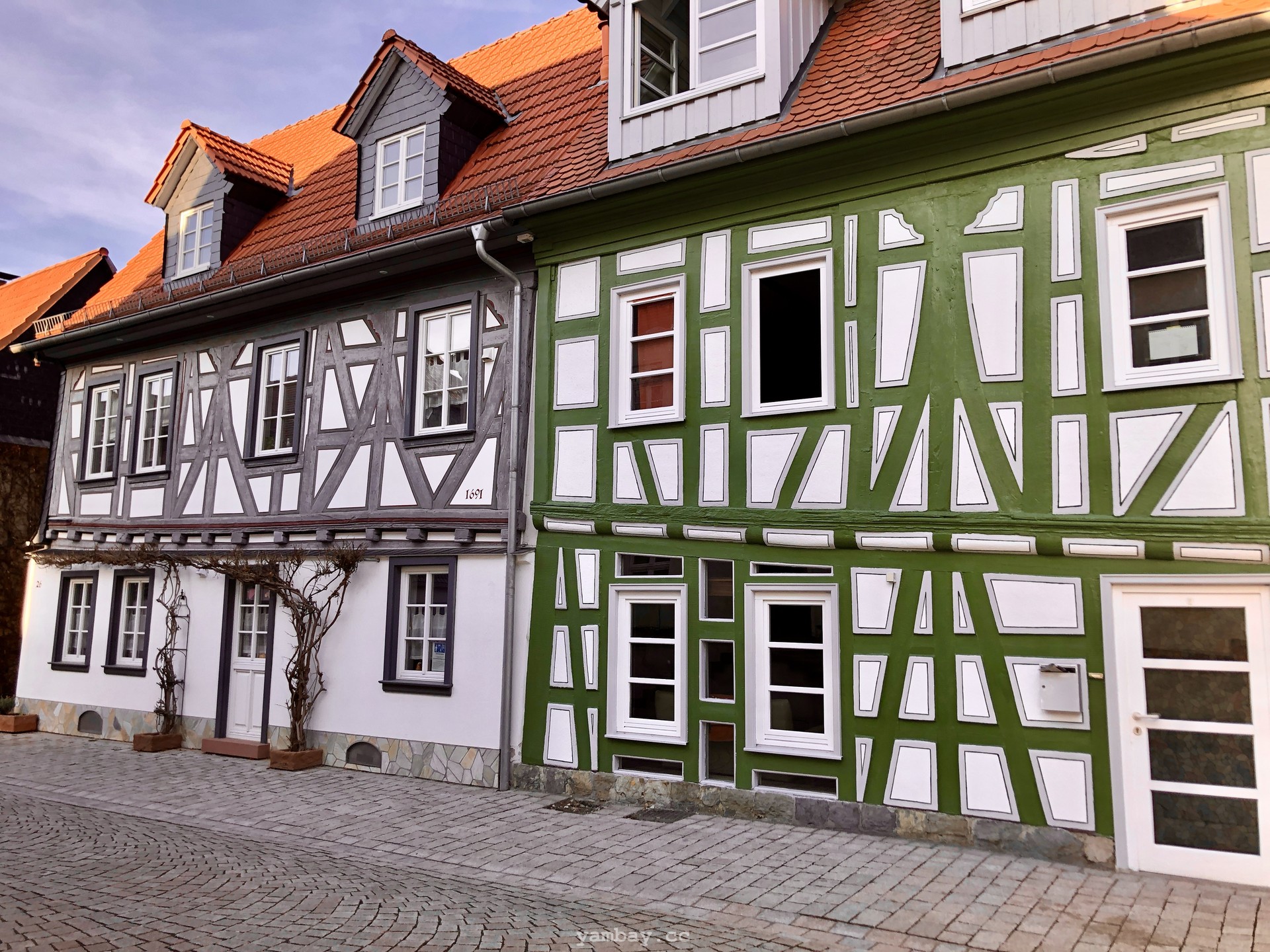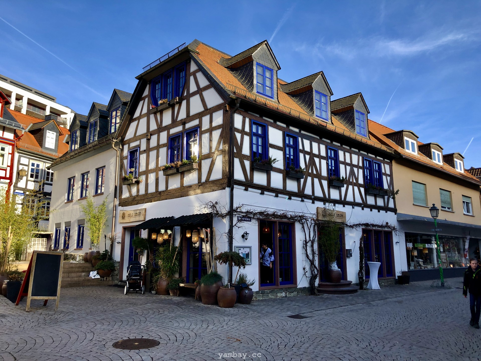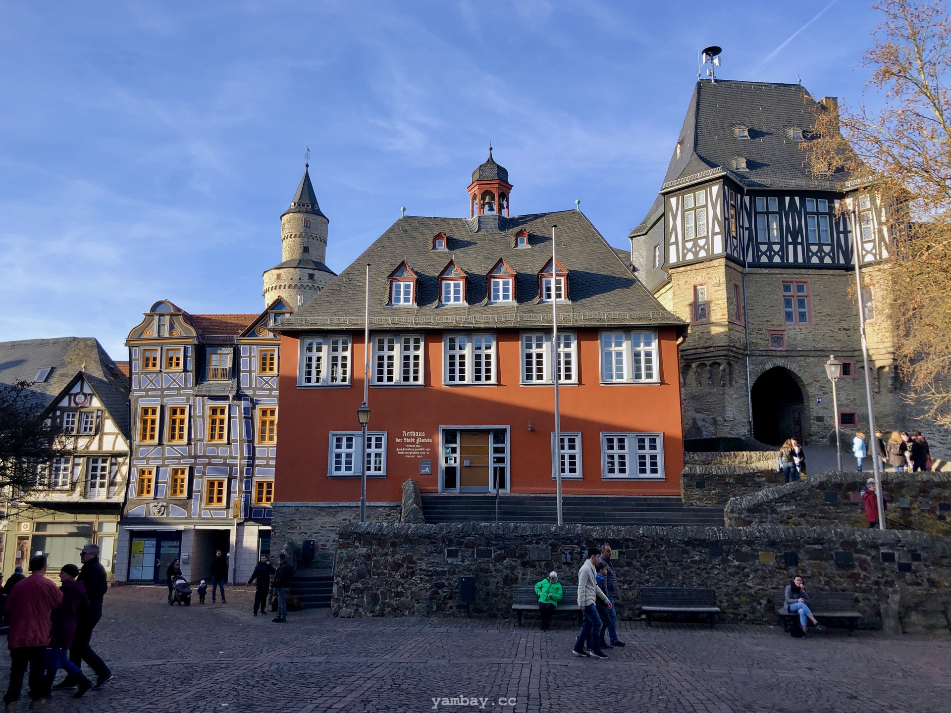Перво-наперво подкрепились в булочной недалеко от центра, где оставили машину. А выйдя из булочной, оказались в пешеходной зоне, втиснувшейся среди слегка покосившихся цветастых фахверковых домиков. Здания в небольшом историческом центре прекрасно сохранились, были хорошо отреставрированы, ярко выкрашены. В тот солнечный день архитектурная палитра смотрелась особенно эффектно. Там же есть старая крепость и бывшая резиденция одной из ветвей некогда влиятельной Нассауской династии.