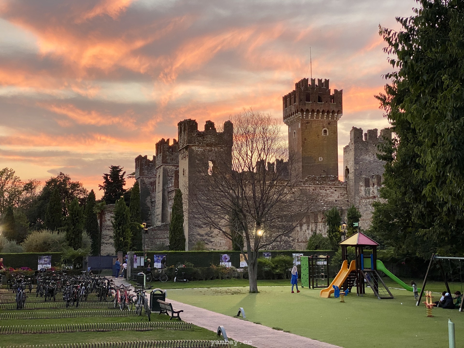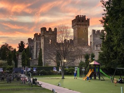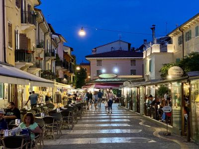 Проведенный на озере Гарда - в Сирмионе - день уже близился к концу, а у нас еще не было ночлега. Тогда-то мы и решили спонтанно заночевать в одном из уютных городков где-нибудь на берегу озера. Абсолютно случайно мы набрели на Лацизе. Нашли стоянку, припарковались и решили остаться здесь. Прогулялись по городку, вернулись на стоянку, сложили кресла, развернули матрас, улеглись и… долго пытались уснуть :)